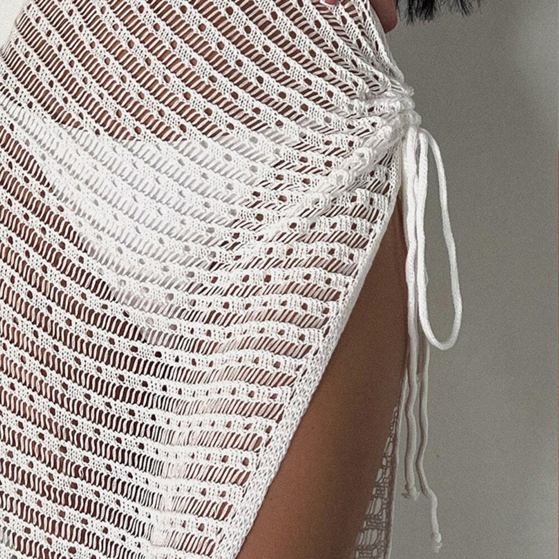 White Knitted One Shoulder Venus Cut Swimsuit Cover Up