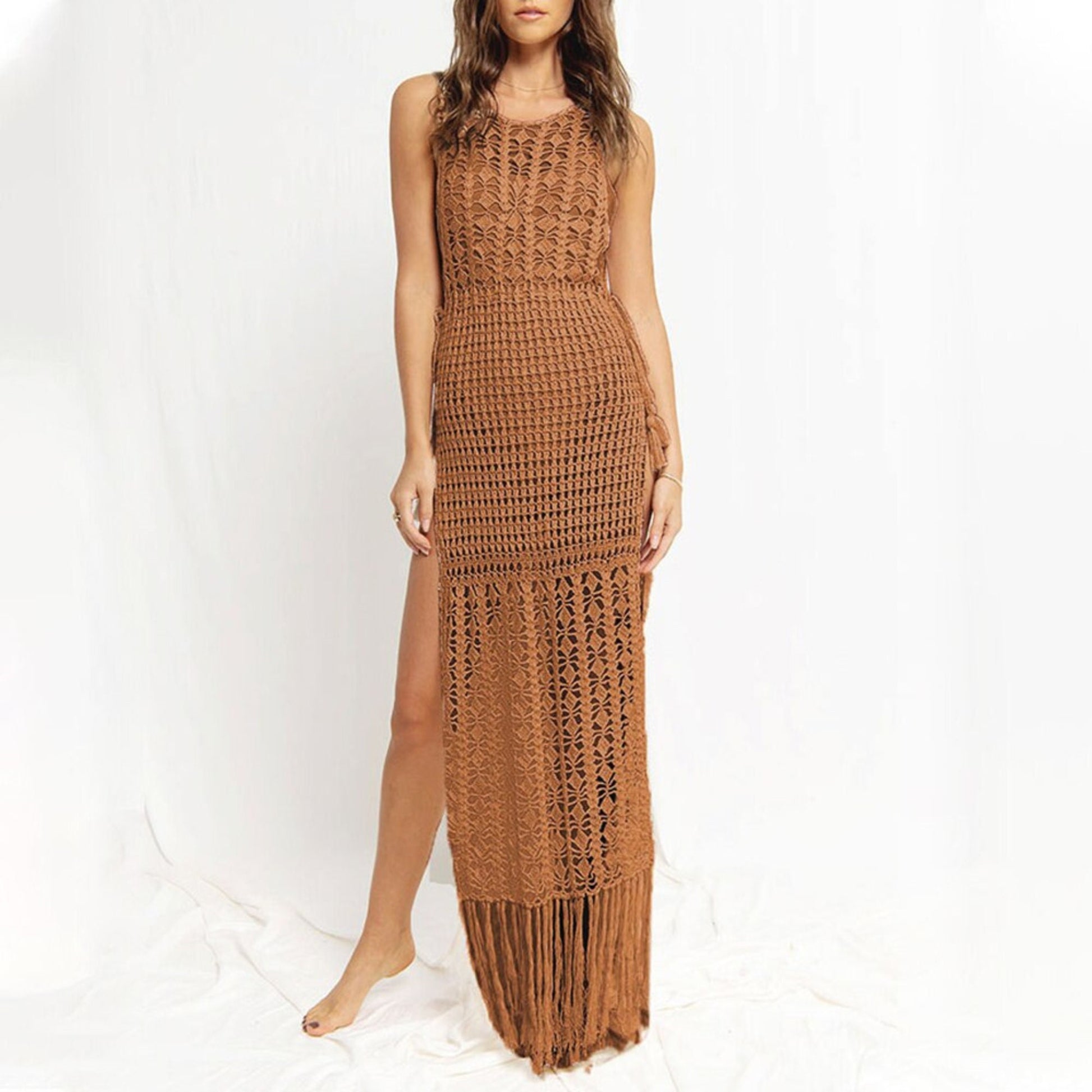 Look beautiful at the beach with the Bikini Cover-ups Sexy Style, White/Brown Crochet Tunic Hollow Out Fringed Mesh Dress Women Summer Beach Wear Swim Suit Cover up. This lightweight crochet tunic is made to stand out and get you noticed. It features hollow out details that give it a gorgeous, feminine look while the knitted fringe tassels add a luxurious air. Perfect for wearing over your favorite swimsuit, this cover-up will be sure to help you make a statement.