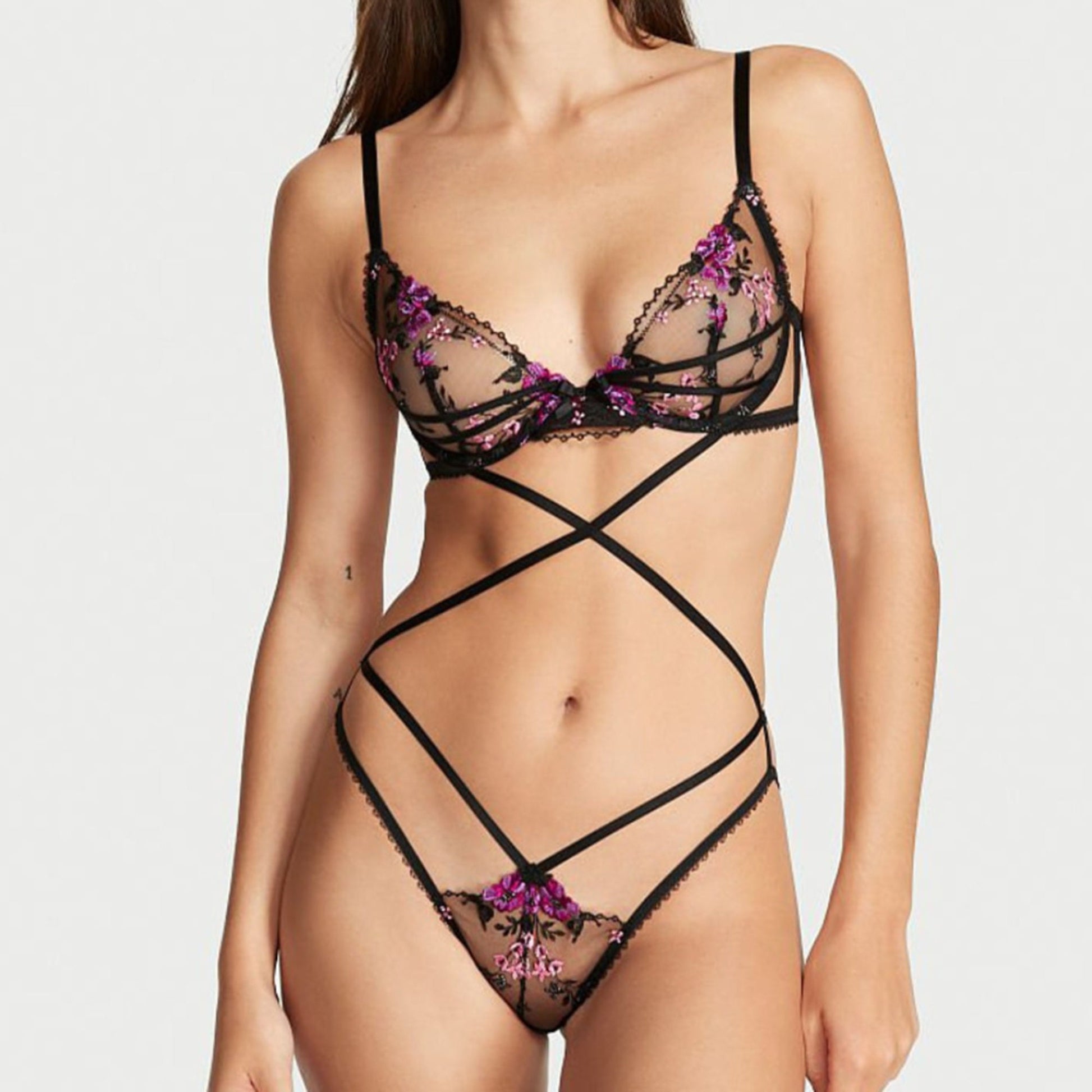 Looking for something truly special in lingerie? Surprise your boyfriend, fiancee, husband with this spicy outfit! Our Bridal Wedding Night Lingerie, See Through String Lingerie Black Lace , Uncensored Lingerie Set, Crotchless Women Erotic Boudoir Lingerie is sure to please with its mix of luxury and sensuality. The set includes a beautiful string lace bodysuit adorned with delicate floral embroidery, plus a matching tanga for an added touch of allure. The see-through lace fabric clings to your curves in all the right ways, while the intricate embroidery adds a touch of luxury. Whether you're wearing this set for yourself or for someone special, you're sure to feel confident and beautiful in it.