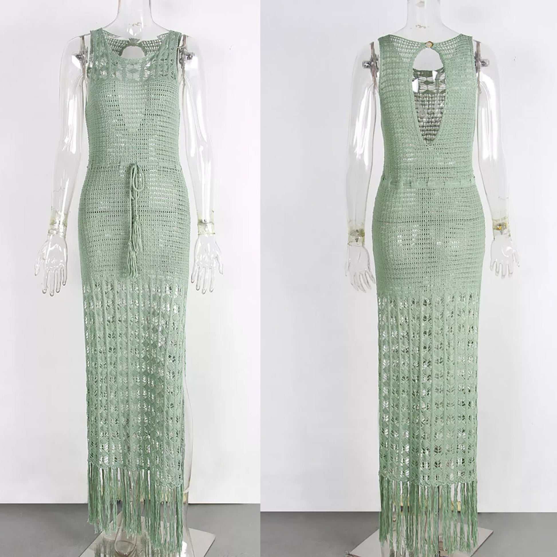Dahlia Hollow Out Fringe Tassel Knitted Swimsuit Cover Up