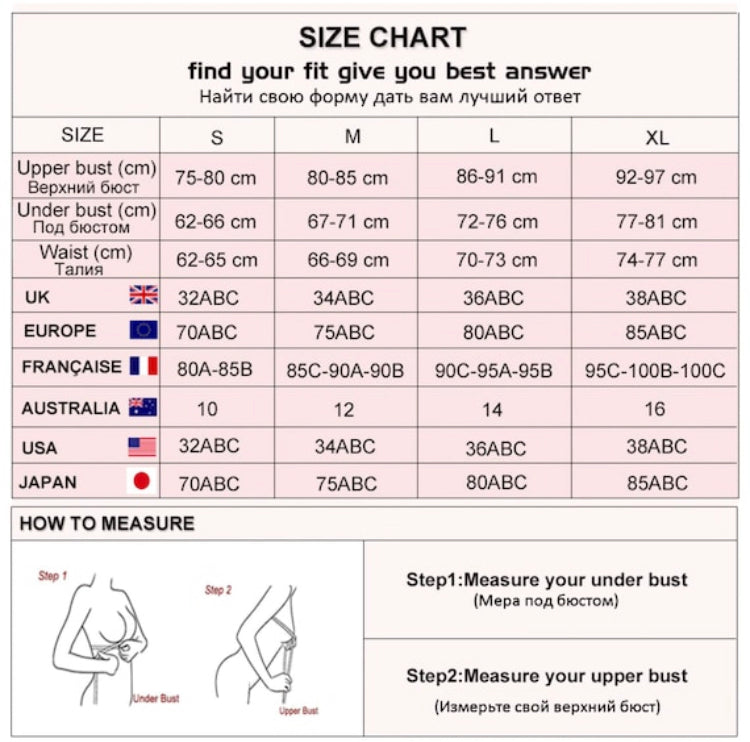 We highly recommend to carefully check your measurements before ordering our products. Every lingerie brand has a different size chart, therefore it is best to check.