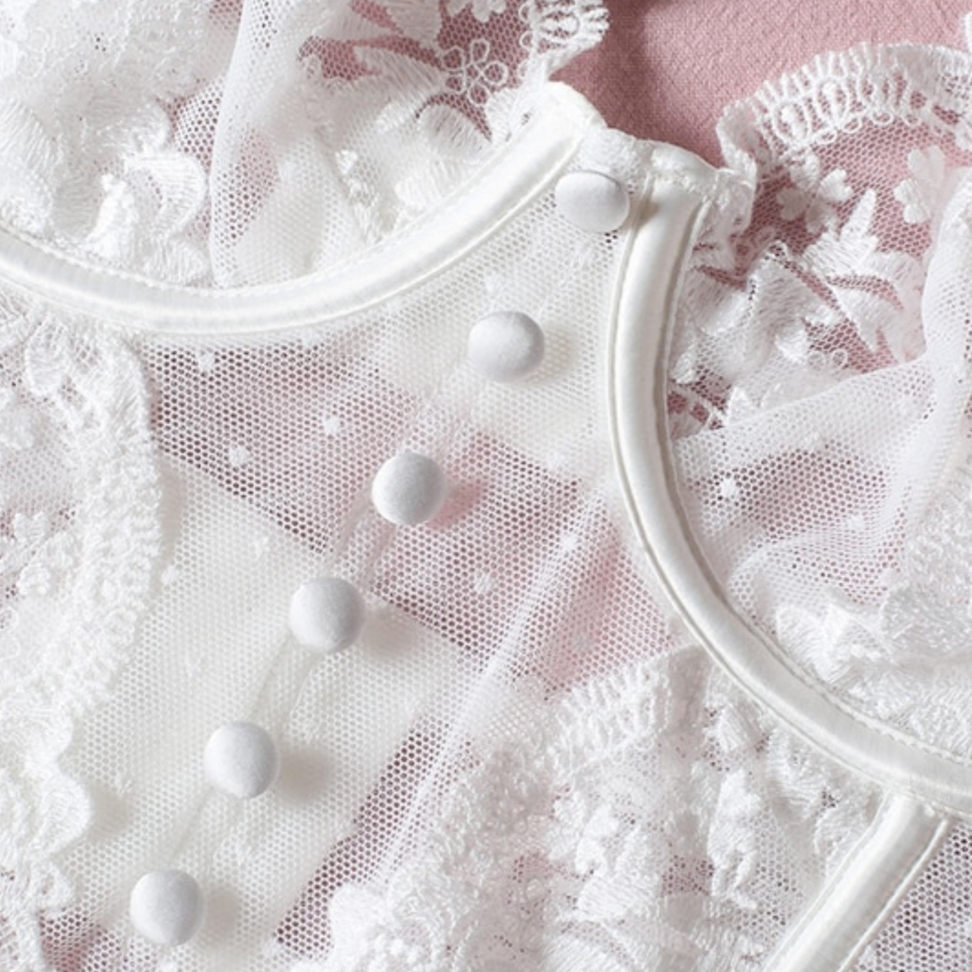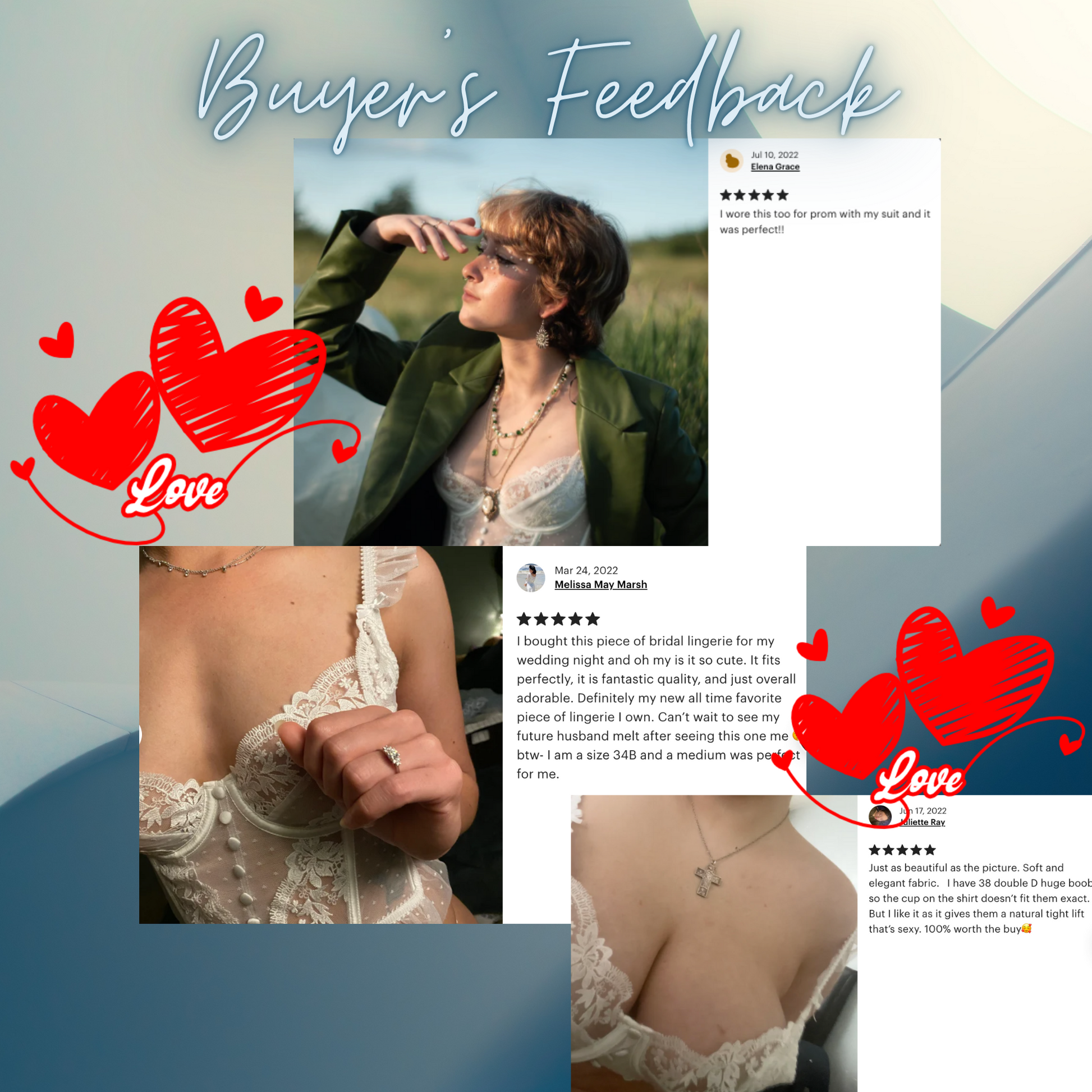 Make a statement on your wedding day with delicate French lace embroidered bridal lingerie. Perfect for prom tops or for a daring boudoir photoshoot, this see through lingerie will add a touch of elegance and sexiness to your big day. Dare to be different!