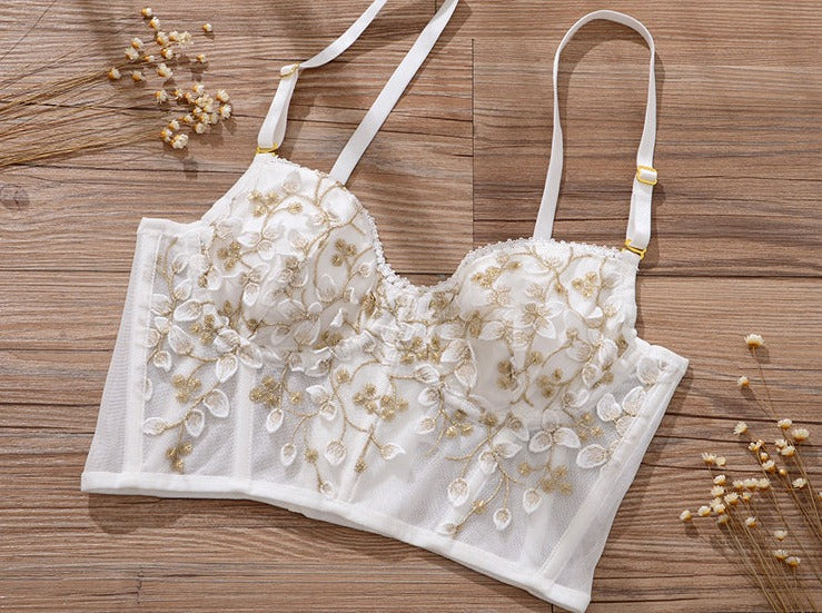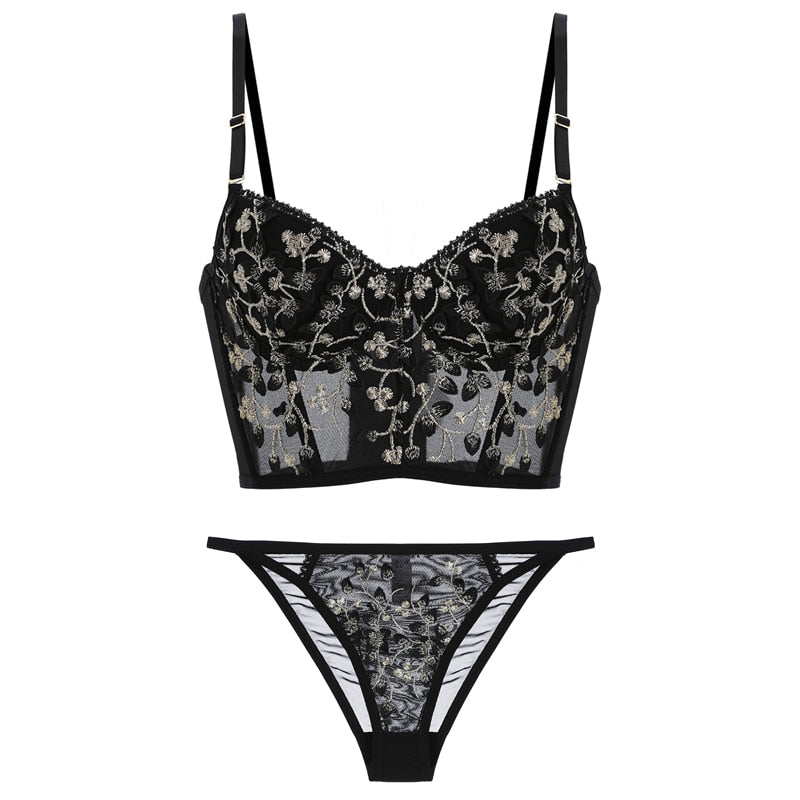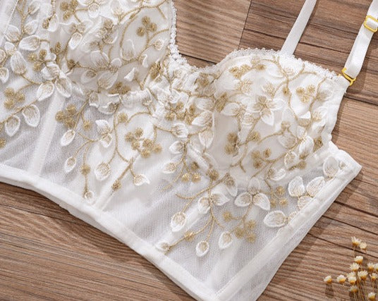 French Embroidered Corset Lingerie Set