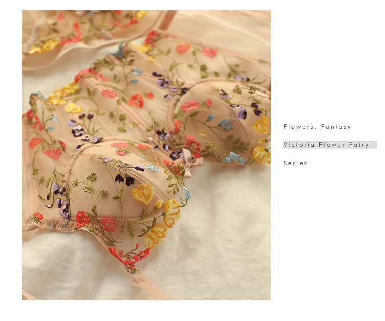 Floral Lace Embroidery Corset Lingerie Set