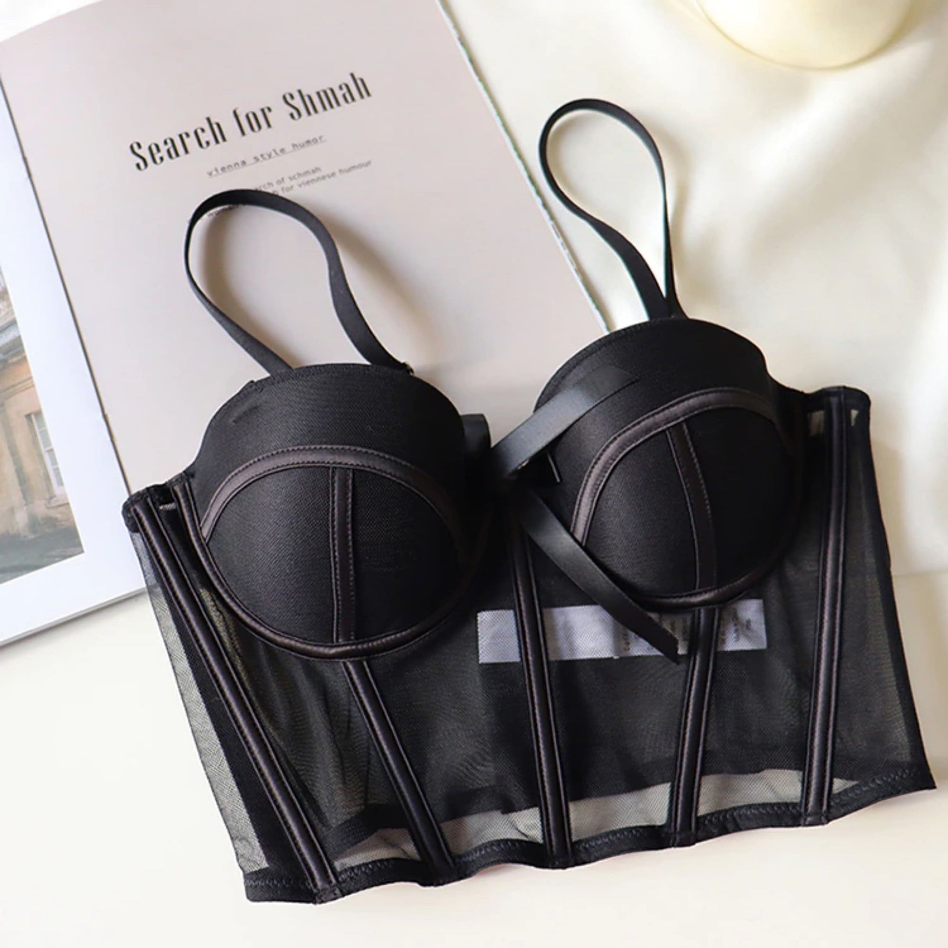 Look hot and stay comfortable in this corset lingerie body shaper set. The beige push up mesh corset top is both sexy and sophisticated. The soft lace bralette gives you a comfortable fit . This bra and panty add an extra layer of coverage. Made from high-quality materials, this lingerie set is sure to keep you looking your best all day long.