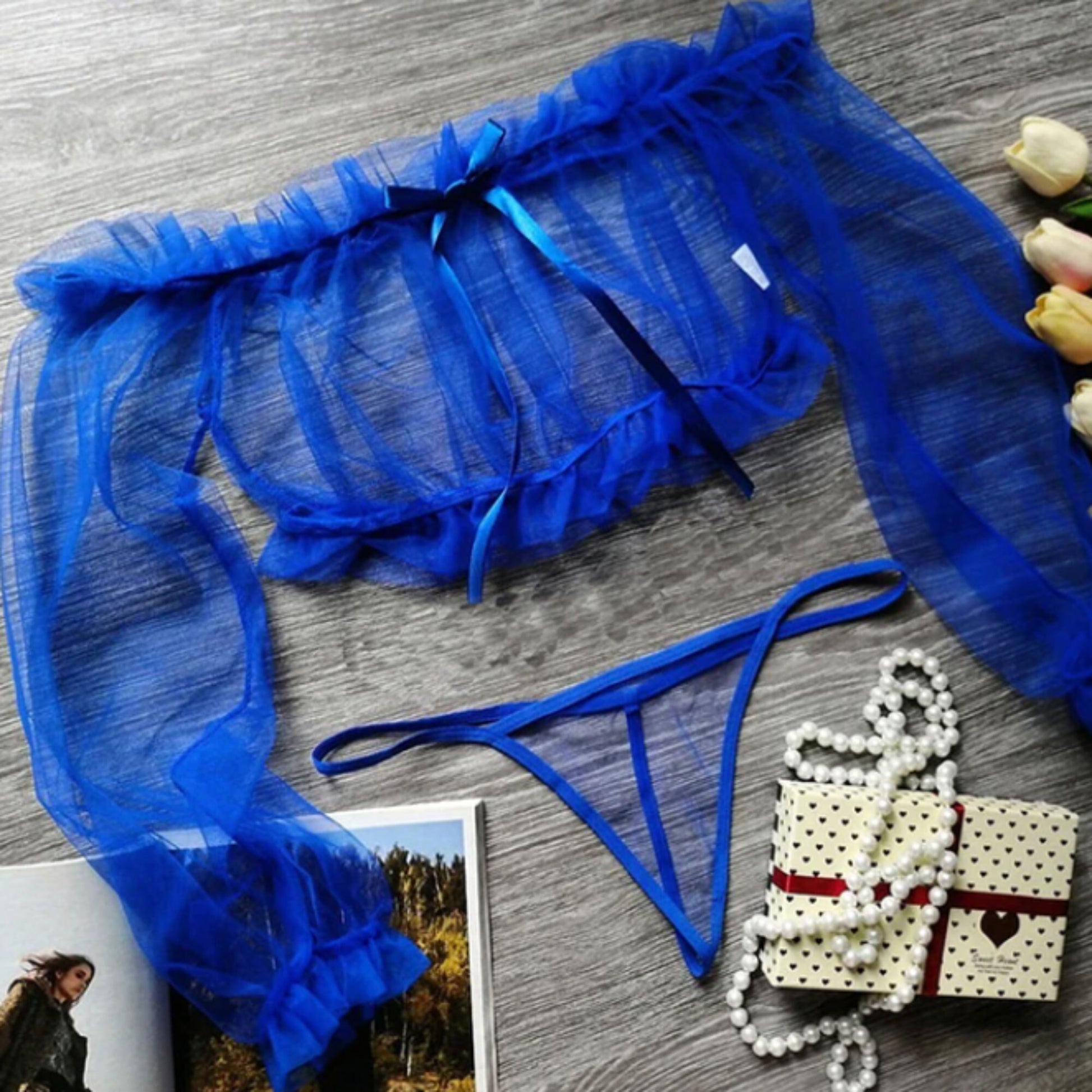 Show off your confidence and femininity with this Sheer See Through Lingerie Set. Crafted from sheer mesh, this amazing lingerie set is designed to make you look and feel beautiful. The off-shoulder top and long sleeves provide a seductive look that flatter your silhouette. Perfect for any special occasion, this look will make you feel gorgeous in any setting. Wear it as a boudoir piece at home or use it to spice up your wedding night. Get ready to seduce in this Sheer See Through Lingerie Set.