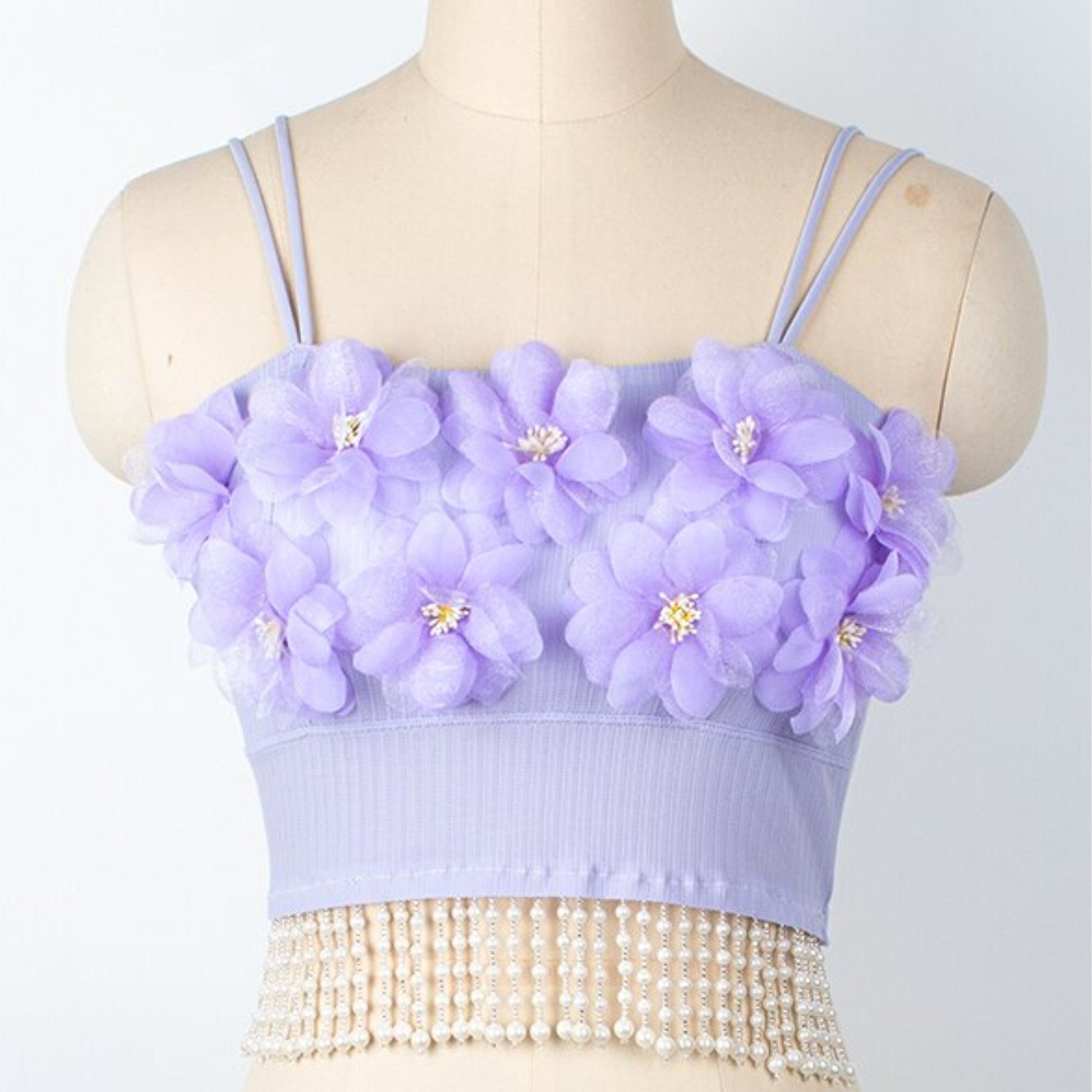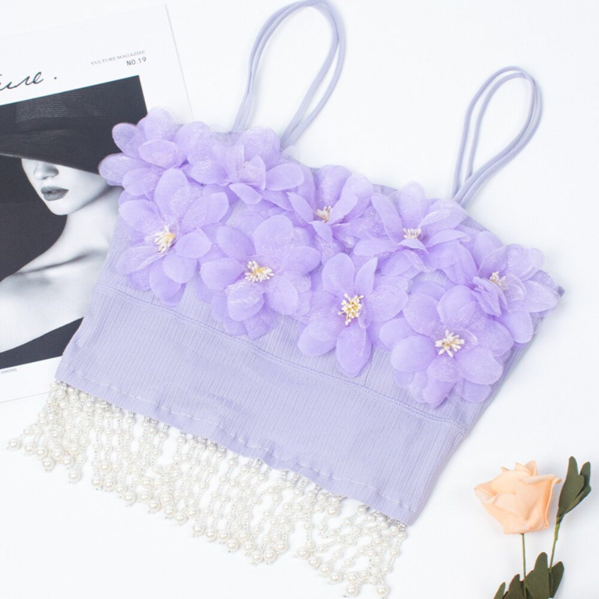Show off your figure and make it stand our with this Summer Tops, Purple Tassel Faux Pearl/Diamond Beading Knit Tops, Applique Floral Vest Women, T-Shirt Camis Tank, Slim Cropped Top. This top brightens up any wardrobe. Made of high-quality materials with a mix of elegant pearls and shiny diamonds, this crop top is perfect for summer outfit, any casual or formal occasion. Whether you're going for a night out or an evening in, this sparkly top is guaranteed to turn heads and make you stand out.