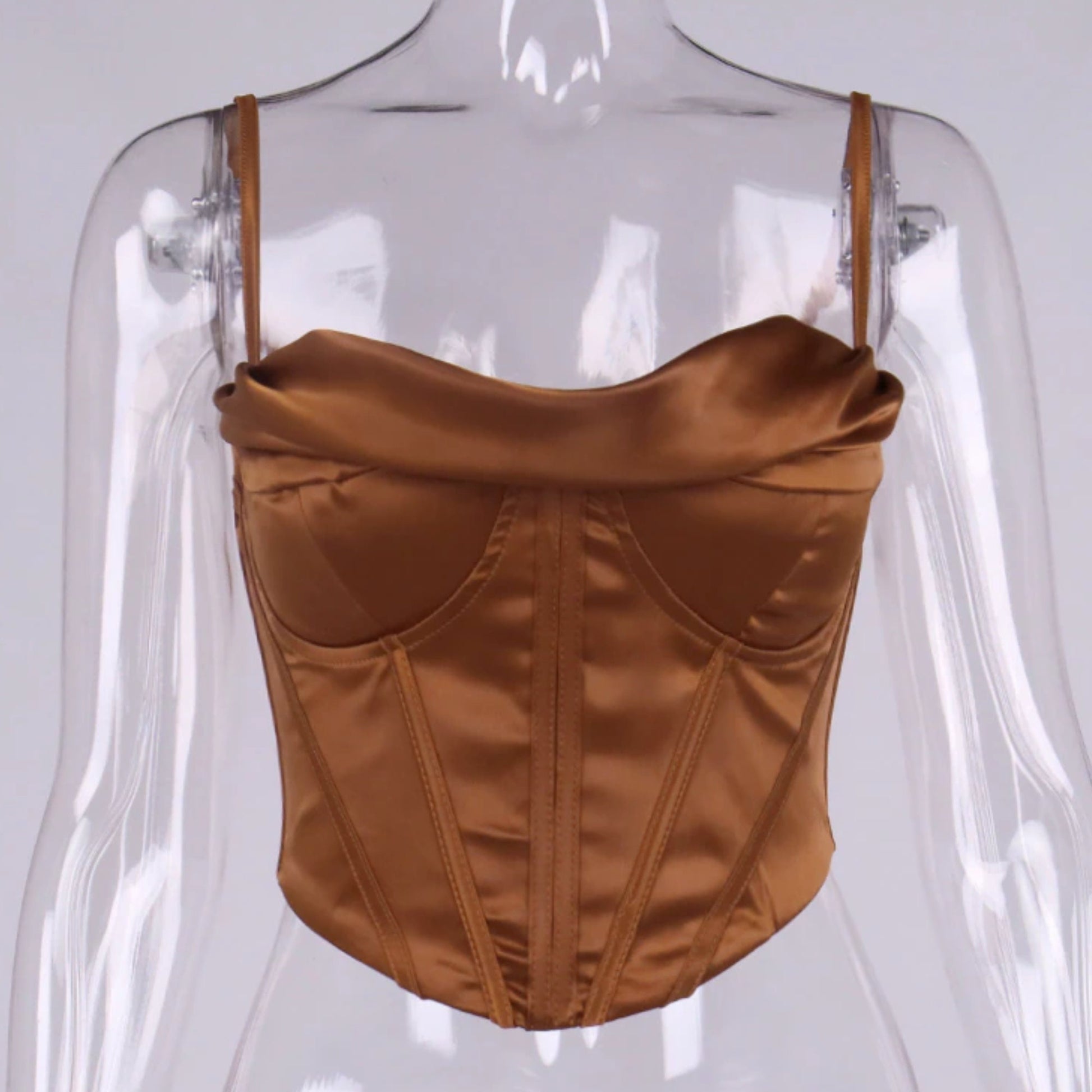 Satin Corset Top Spaghetti Strap Boned Body Shaper