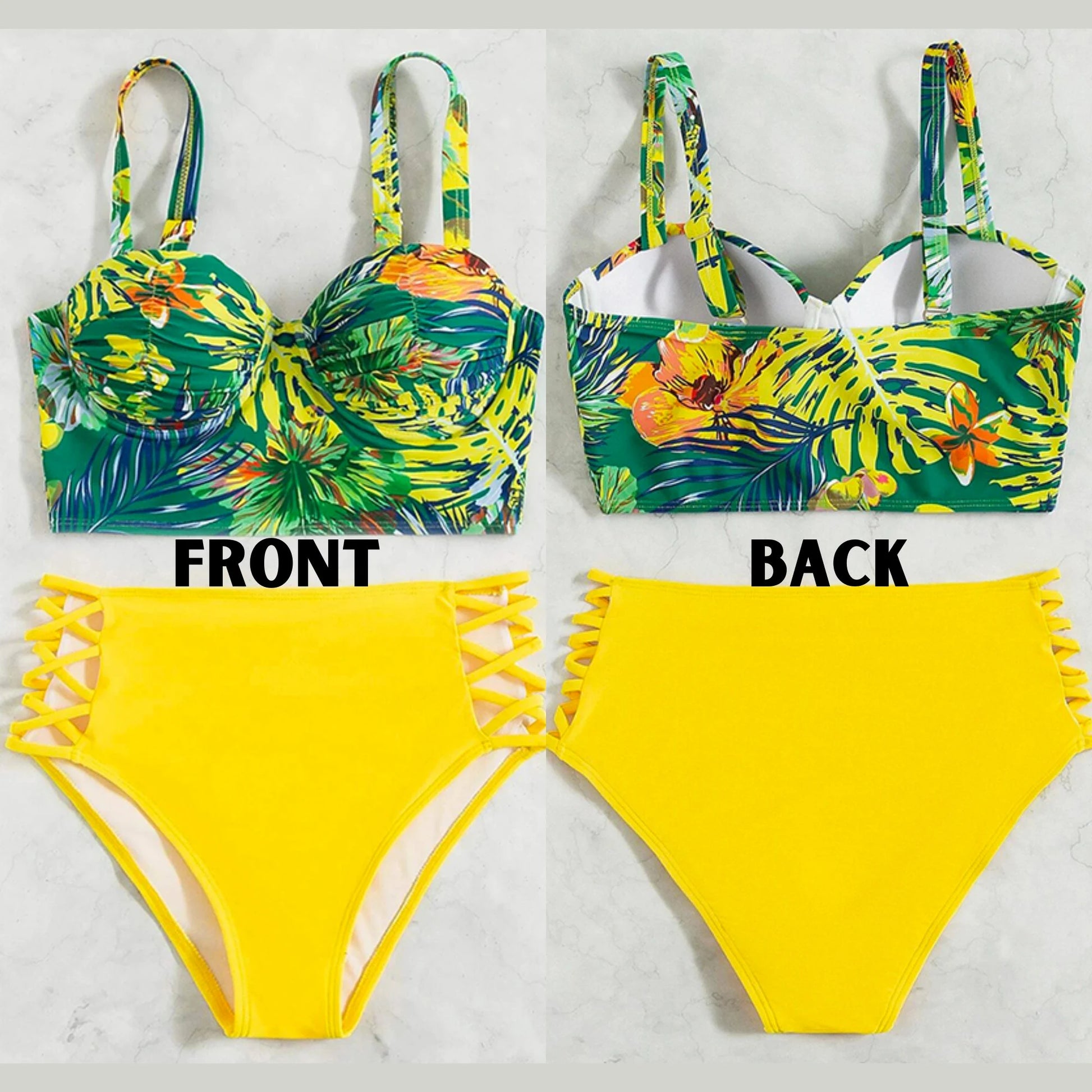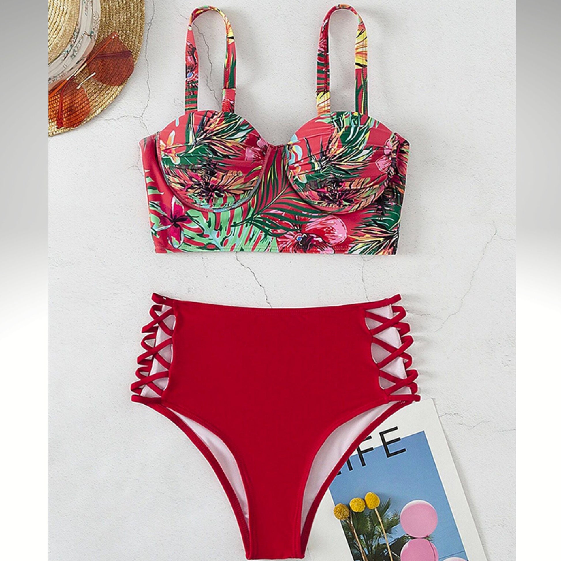 Whether you’re lounging poolside or soaking up the summer sun, you’ll be looking your best in this sexy bikini set. The bold floral print and strappy accents are sure to make a statement, while the high-waisted design and push up features provide maximum comfort and support. Be chic and confident for your next beach outing with this high-waisted floral printed bikini set. Perfect for your curvy silhouette, make it your go-to swimwear for those warm summer days!