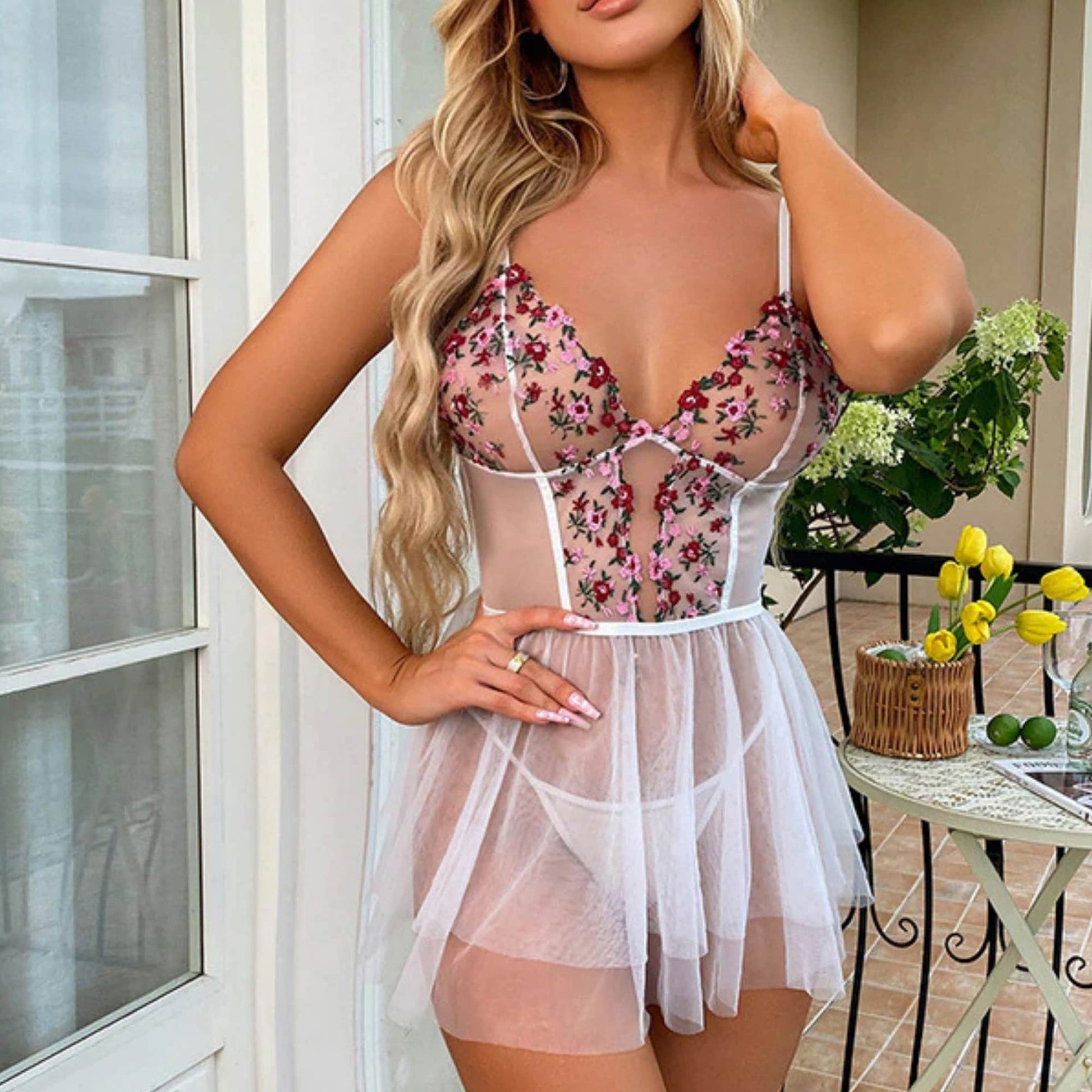 Celebrate your next special occasion in this wedding lace sheer mini nightdress The high quality luxe boudoir set is perfect for a bridal lingerie wedding night, or any other romantic night! With delicate see through lace, you'll feel beautiful and empowered. The intricate details of the lace allow for a sophisticated look that shows off all of your assets. Step out in classy confidence knowing you look your best in this stunning lingerie set.