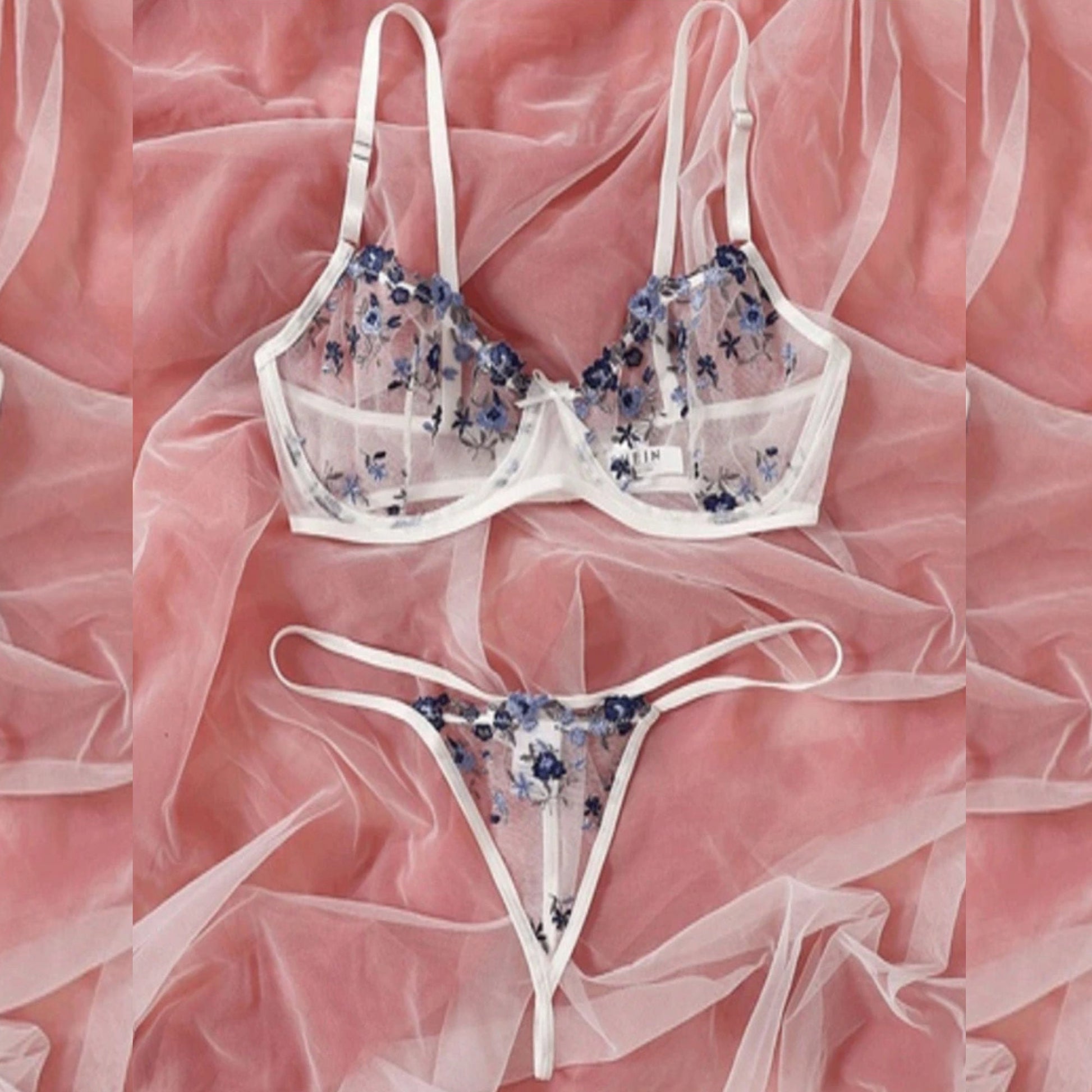 Wedding Lingerie Sheer See through French Floral Embroidery Bridal Set