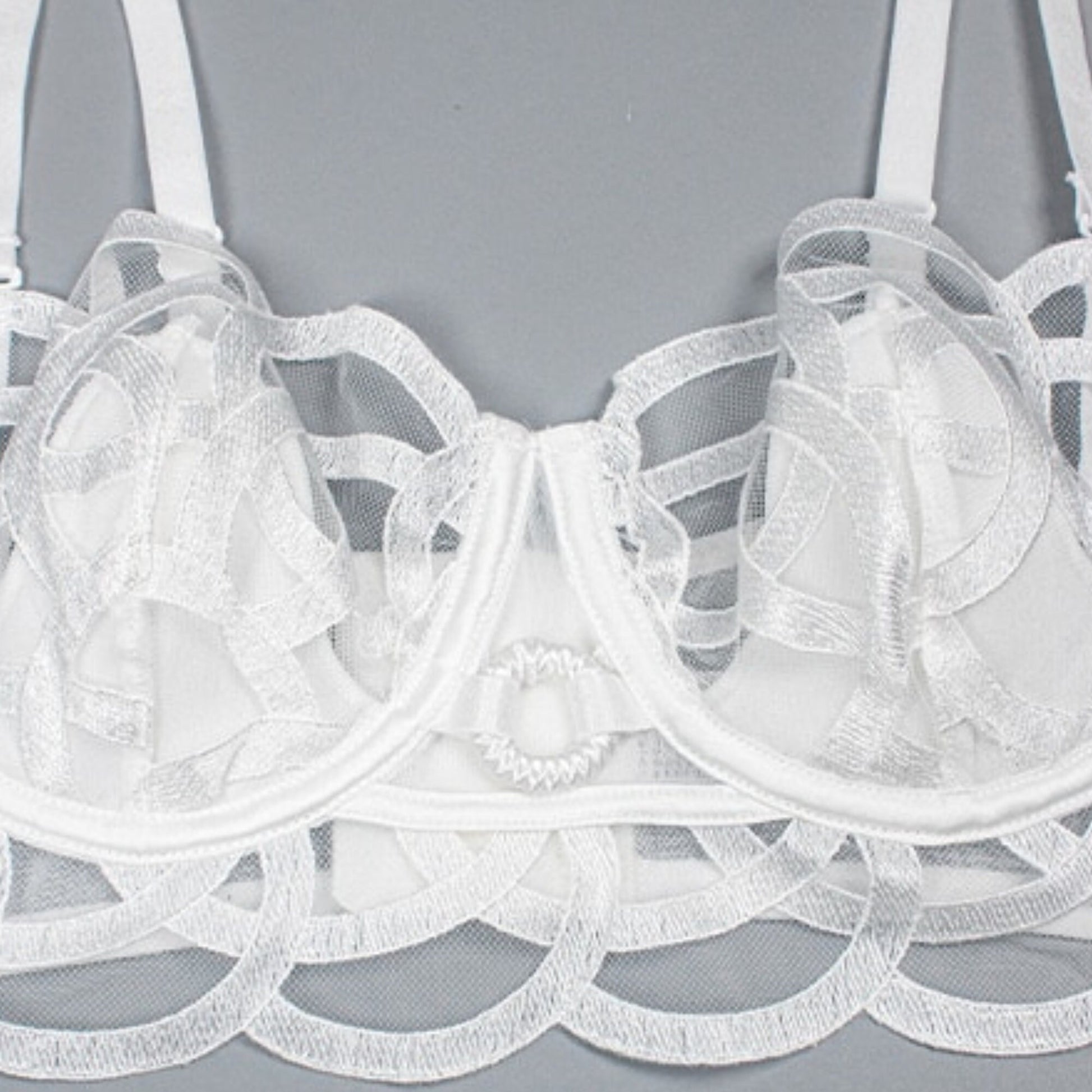 The dream of every bride is to find the perfect wedding lingerie set. Well, look no more! This lacy, ultra-thin set has got you covered. With delicate French lace over a whisper-thin white with delicate flowers on the bustier and briefs, it’s sure to make your wedding night unforgettable.