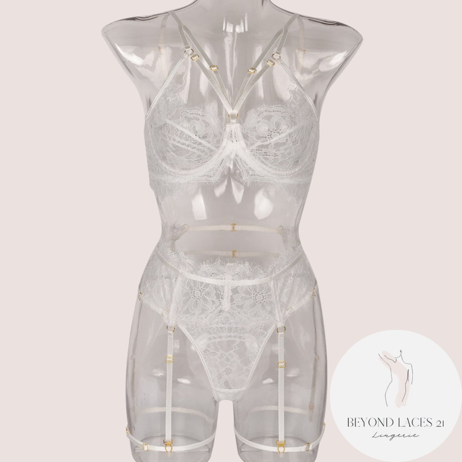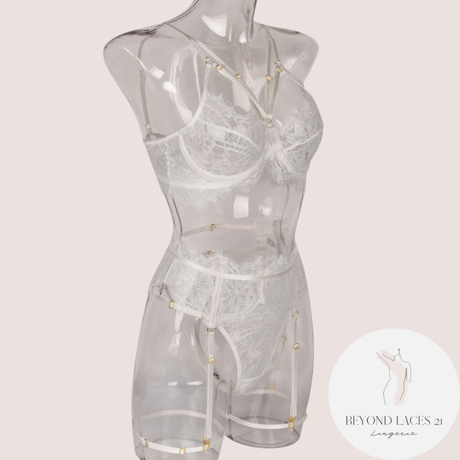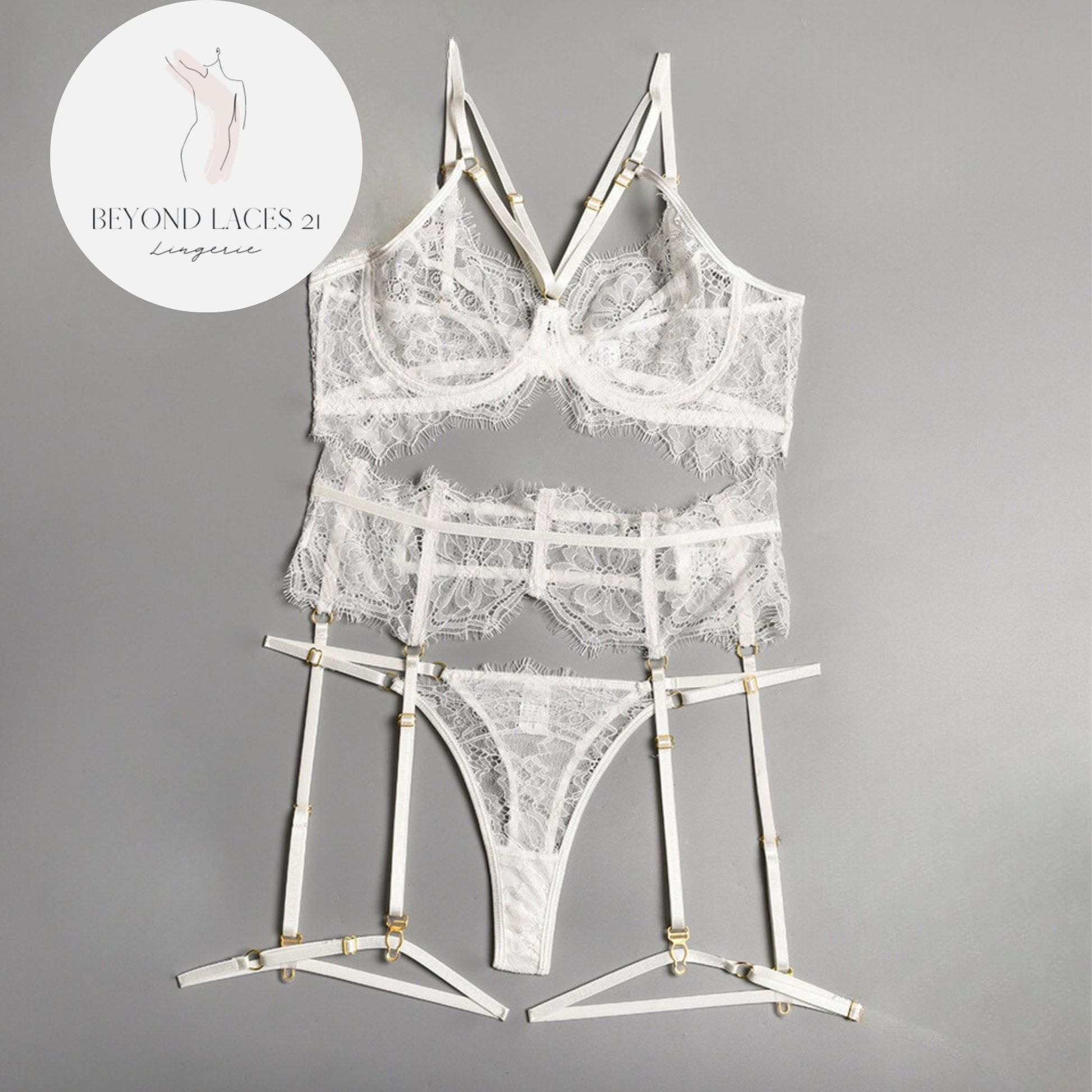 White Eyelash Lace See Through Lingerie Set Bridal Lingerie Wedding Night